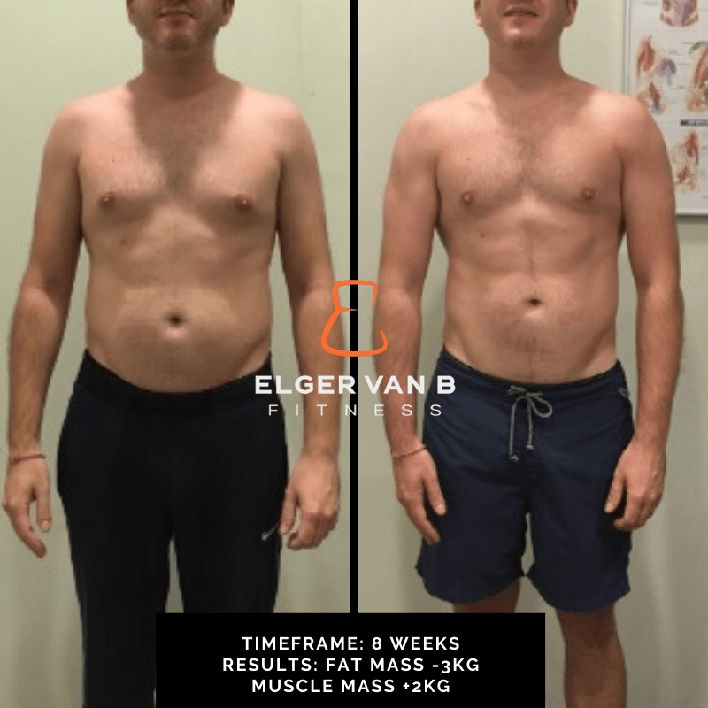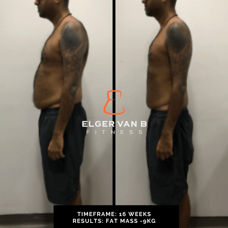 Working out with Elger has been a revelation. Not only does he tailor each session to my particular quirks and needs, he varies the training enough to keep me interested. I never would have believed I’d look forward to exercising and I am amazed about the results I have achieved, losing 9kg in 16 weeks!